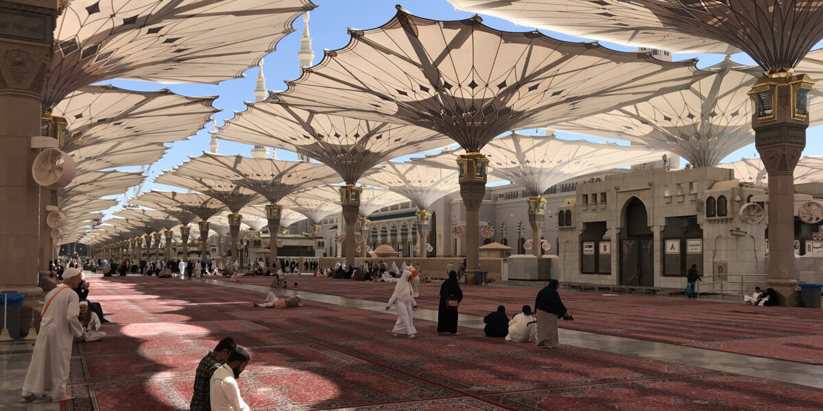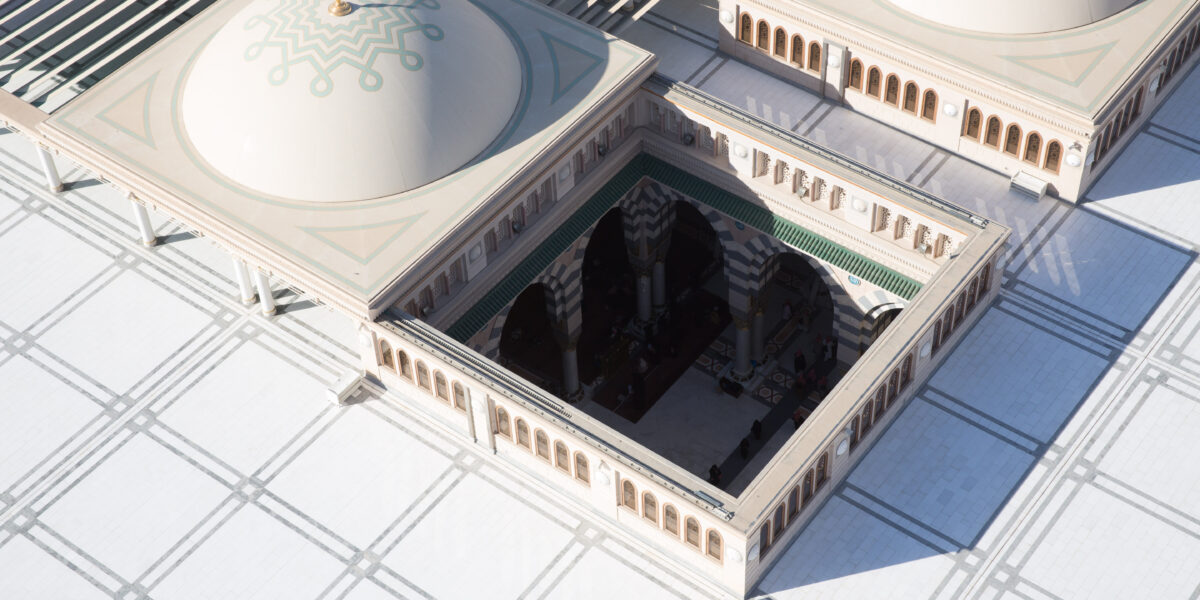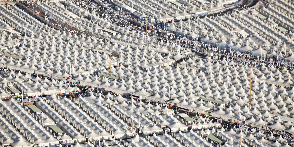Within Islam, the Hajj is one of the five pillars of faith. Each year, some 2 million pilgrims take part. Rasch gained great recognition for creating enormous self-deploying parasols in the city of Medina. These parasols protect pilgrims from the scorching sun. Besides crowd crushes, the heat is one of the main causes of death during the Hajj. What makes Rasch’s work distinctive is that he designs functionally for a spiritual practice. He was one of the first to map out the Hajj as a design challenge. This way of looking at the Hajj reveals to visitors all manner of earthly considerations and decisions for a heavenly project.