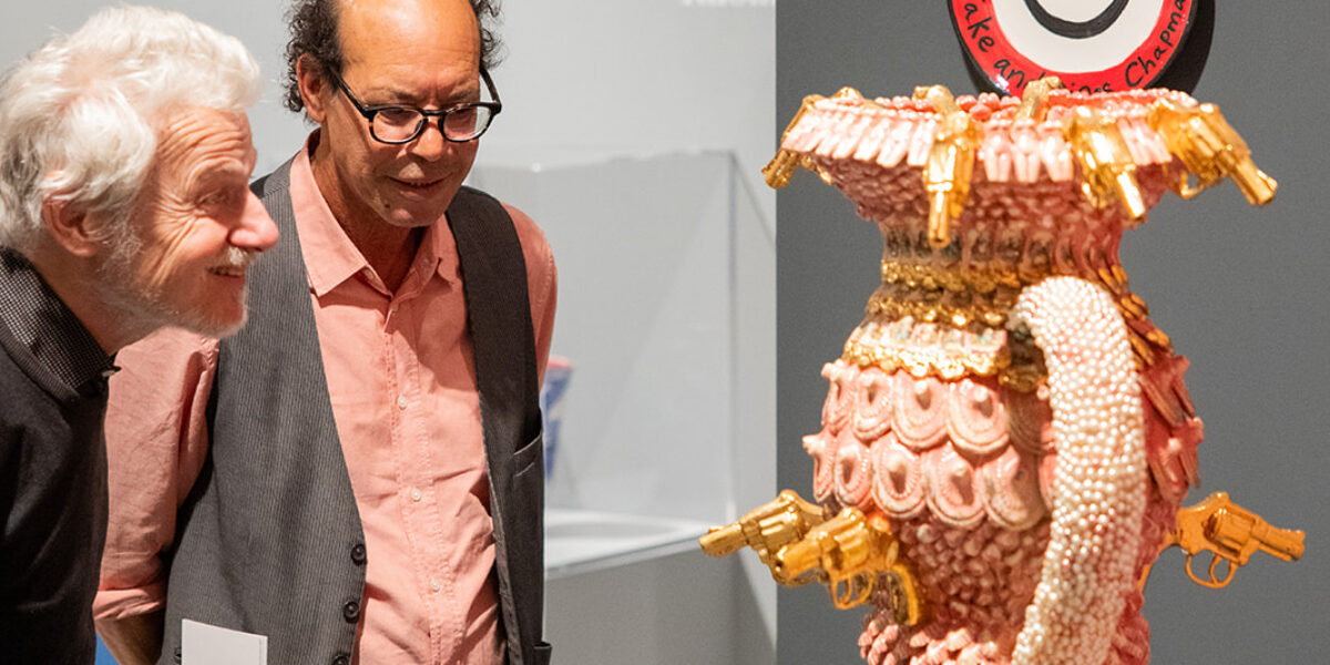 One of the absolute highlights is the vase But What Am I Supposed To Wear To The Surface Decoration Ball! by British artist Grayson Perry, acquired by the museum in 2016. The exhibition takes its title from this work, which also served as the guiding theme in selecting over one hundred ceramic objects. With sharp wit and irony, Perry’s title touches on a recurring question in contemporary art and design: what is the meaning of decoration? This question is especially relevant in the context of artists’ ceramics and Perry’s own body of work. In Western culture, decoration and ornamentation are often seen as unnecessary, sometimes even superficial—or as an indicator of bad taste. With his flamboyant vase, Perry gives a playful nod to the deadly serious debate around decoration in the art world.