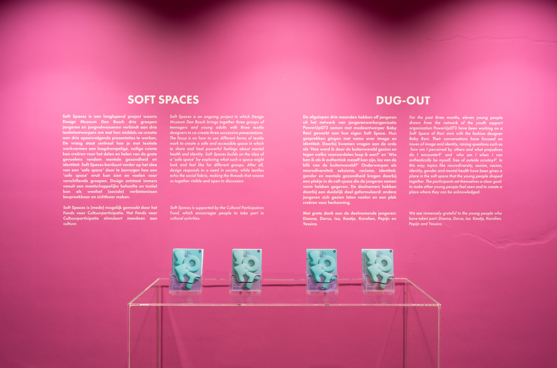 Soft Spaces: Dug–out is guided by audience-engagement staff member Sanne Boersma. The graphic design is provided by Dana Dijkgraaf Design.