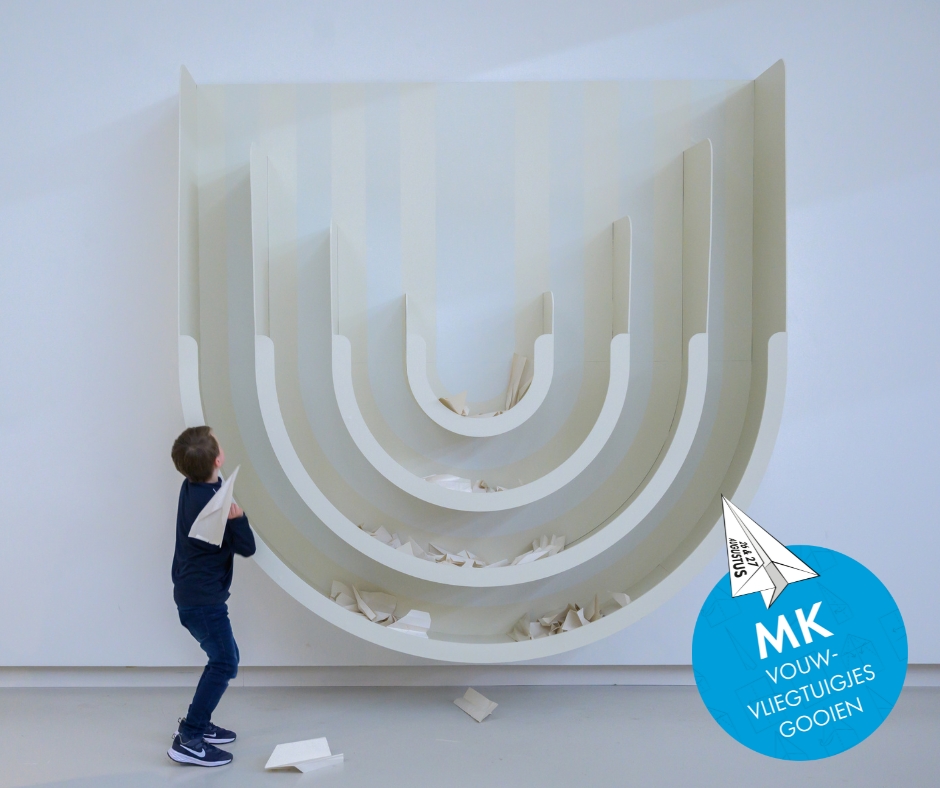 Museumkampioenschap vouwvliegtuigjes gooien