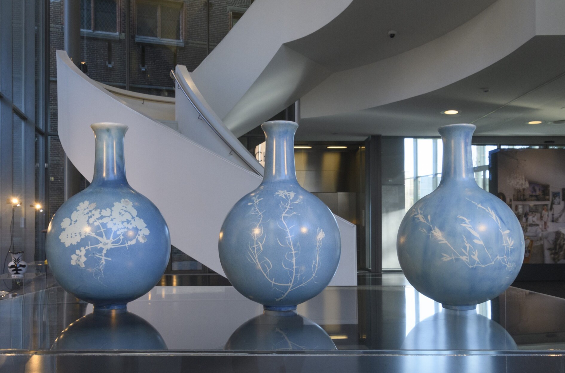 Met ‘Blueware’ verwijst Glithero naar de historische relatie tussen keramiek en de kleur blauw. De afbeelding van de planten in de serie komen tot stand met behulp van cyanotypie. Dit fotografische proces, waarmee blauwdrukken gemaakt worden, werd ontdekt in Engeland in 1842. Glithero kwam in 2010 met een nieuwe toepassing. Hun handgemaakte keramiek wordt geïmpregneerd met lichtgevoelige chemicaliën, waarna het beplakt wordt met wilde bloemen en planten uit de omgeving van hun Londense studio. Na een periode van belichting met een ultraviolette lamp kleuren de onbedekte oppervlaktes Pruisisch blauw en blijven de ruimtes onder de planten wit. Ook de kleine stukjes tape waarmee de planten op de keramiek geplakt waren blijven als witte streepjes zichtbaar. De goede kijker kan zo het maakproces ontrafelen.
