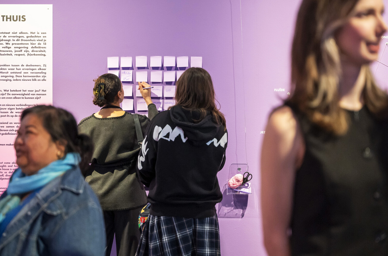 Soft Spaces is een langlopend project waarin Design Museum Den Bosch drie groepen uit de stad verbindt aan drie textielontwerpers om met hen middels co-creatie aan drie opeenvolgende presentaties te werken. Soft Spaces: Droomhuis is de tweede presentatie in de serie, en wordt gemaakt door Feniks – Emancipatie Expertise Centrum in samenwerking met Lisa Ijeoma. De vraag staat centraal hoe je met textiele werkvormen een laagdrempelige, veilige, ruimte kan creëren voor het delen en helen van de grote gevoelens rondom mentale gezondheid en identiteit. Soft Spaces borduurt verder op het idee van een ‘safe space’ door te bevragen hoe een ‘safe space’ eruit kan zien en voelen voor verschillende groepen. Design ontstaat immers vanuit een maatschappelijke behoefte en textiel kan als weefsel (sociale) verbintenissen bespreekbaar en zichtbaar maken.