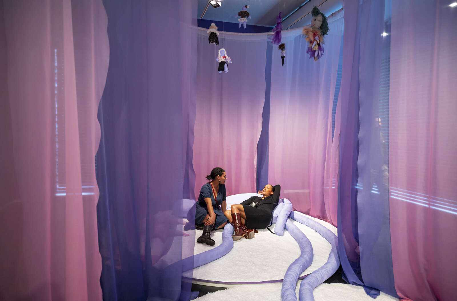 Deze presentatie is het resultaat van een uniek traject van co-creatie, waarbij groepen uit de stad worden gekoppeld aan textielkunstenaars om samen een Soft Space te ontwikkelen. Voor deze derde editie van Soft Spaces gingen deelnemers van Feniks – Emancipatie Expertise Centrum aan de slag met textielkunstenaar Lisa Ijeoma.