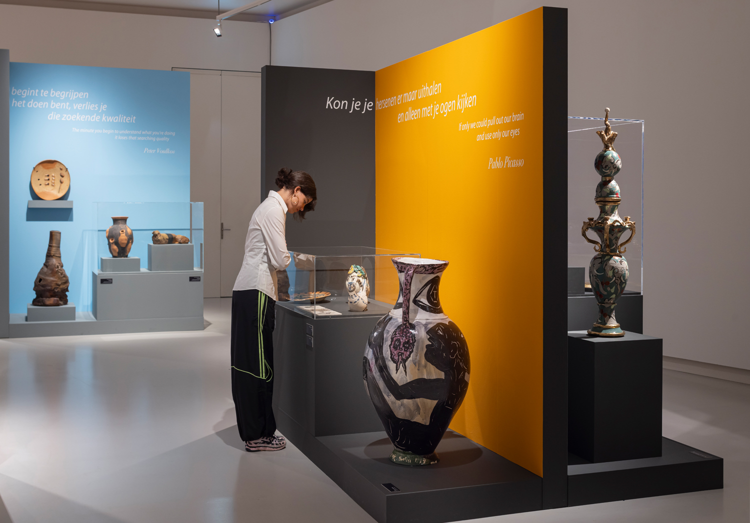 In deze tentoonstelling dit keer geen kunsthistorische analyses of culturele plaatsbepalingen van de getoonde werken. We laten de ontwerpers en kunstenaars zelf aan het woord, met citaten die ons aan het denken zetten over kunst en vormgeving. En over keramiek en decoratie natuurlijk.