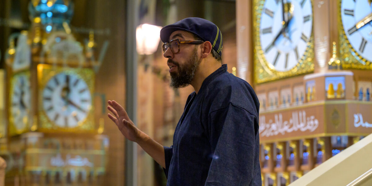 Binnen de islam is de hadj één van de vijf pijlers van het geloof. Jaarlijks nemen er zo’n 2 miljoen pelgrims aan deel. Rasch verwierf grote bekendheid met het maken van enorme zelf-ontvouwende parasols in de stad Medina. Deze parasols beschermen de pelgrims tegen de brandende zon. Naast verdrukking is dit één van de belangrijkste doodsoorzaken tijdens de hadj. Wat Rasch’ werk bijzonder maakt, is dat hij functioneel ontwerpt voor een spirituele praktijk. Hij was een van de eersten die de hadj in kaart bracht als een ontwerpopgave. Deze manier van kijken naar de hadj laat de bezoeker allerlei aardse overwegingen en besluiten zien voor een hemels project.
