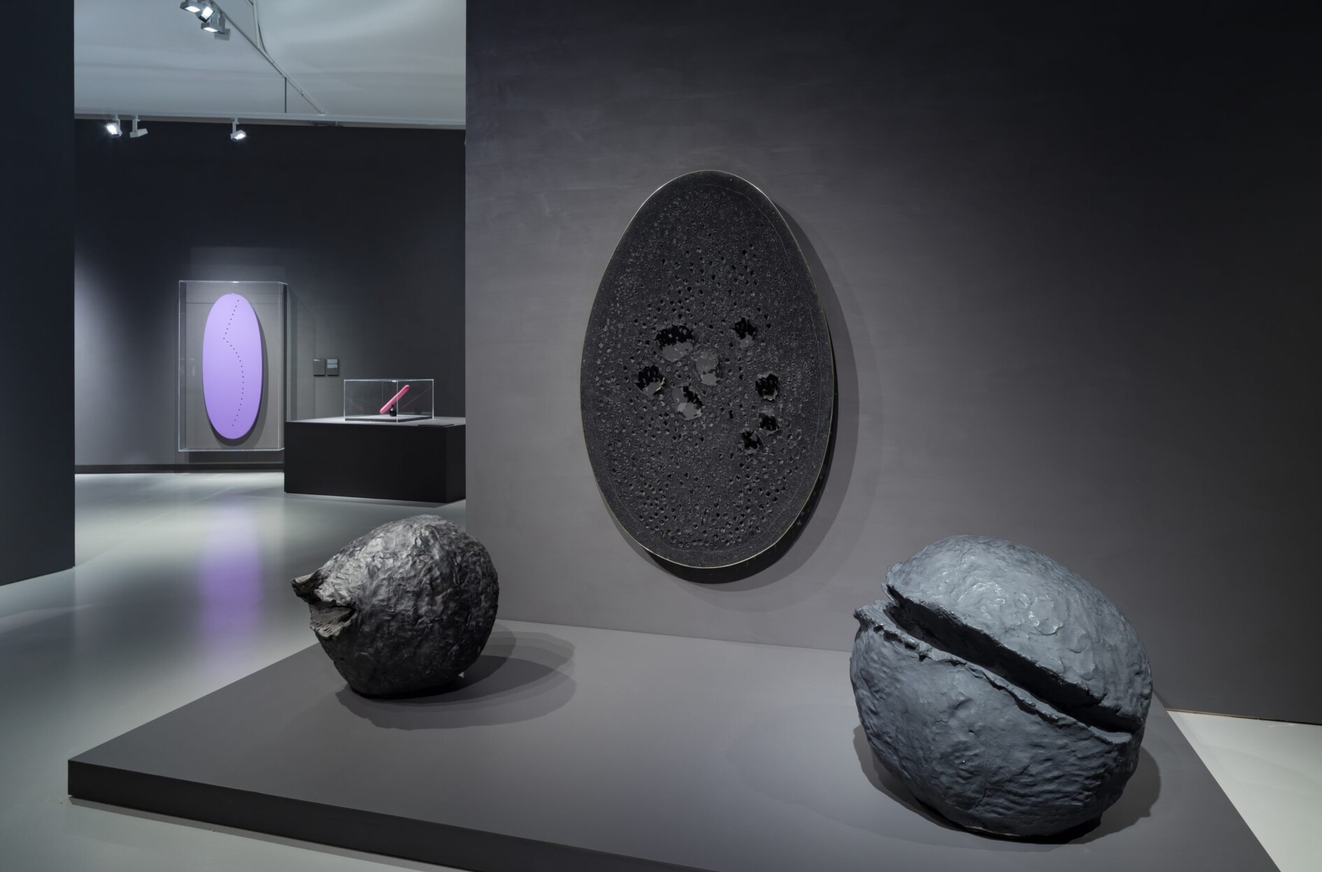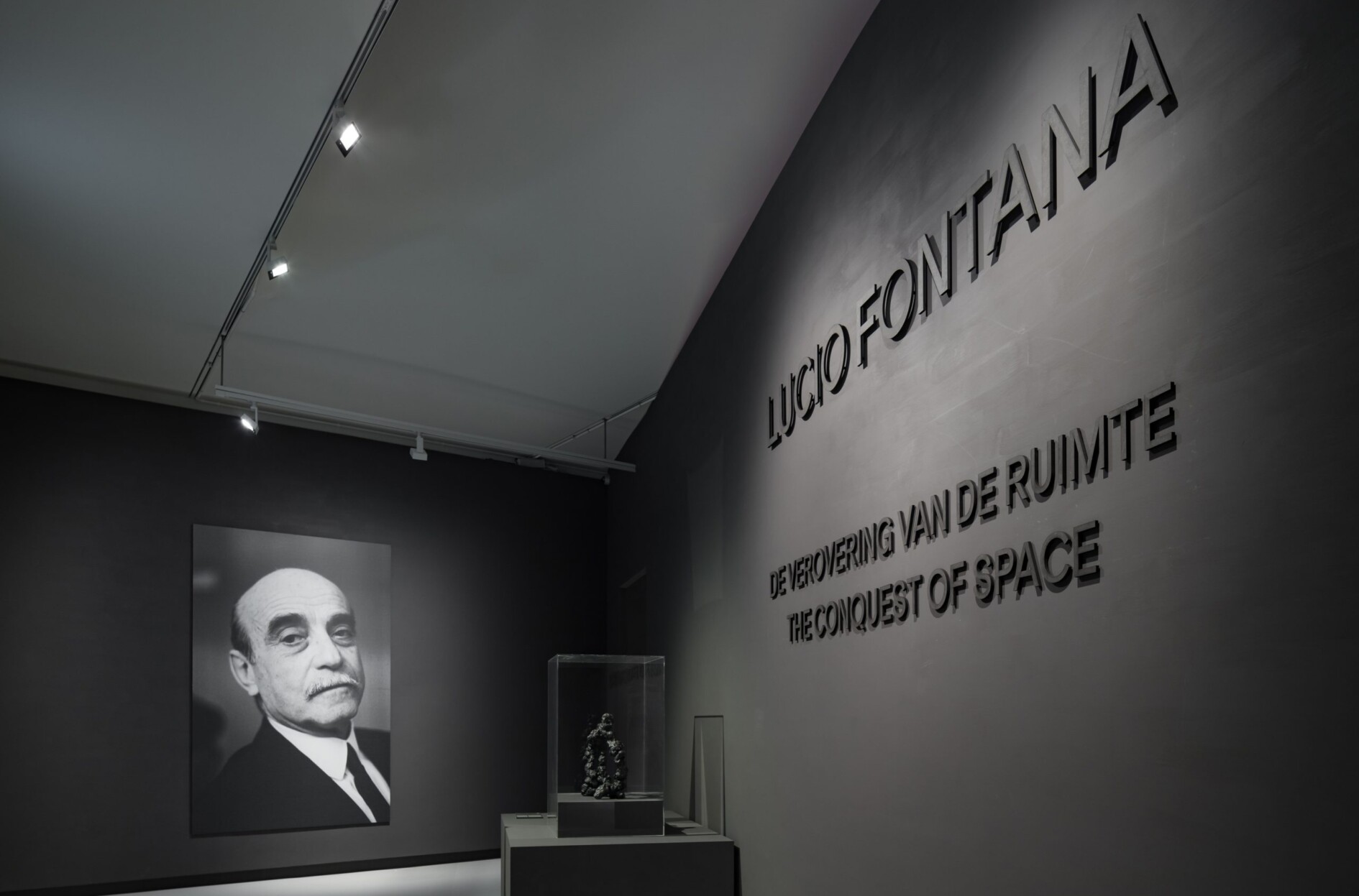 Wat alle werken in de tentoonstelling verbindt, is dat ze Fontana’s zoektocht naar een nieuw concept van ruimte laten zien. Met zijn gaten in het schildersdoek doorbrak hij het platte vlak en de illusie van ruimtelijkheid die traditionele schilderkunst probeert na te bootsen. Met zijn ruimtelijke installaties, schilderijen, keramiek, sculptuur en sieraden bevrijdde hij beeldende kunst, vormgeving en architectuur van hun traditionele begrenzingen. Gezamenlijk geven al deze werken inzicht in Fontana’s verovering van de ruimte in een tijdperk waarin de mensheid de kosmische ruimte betrad.