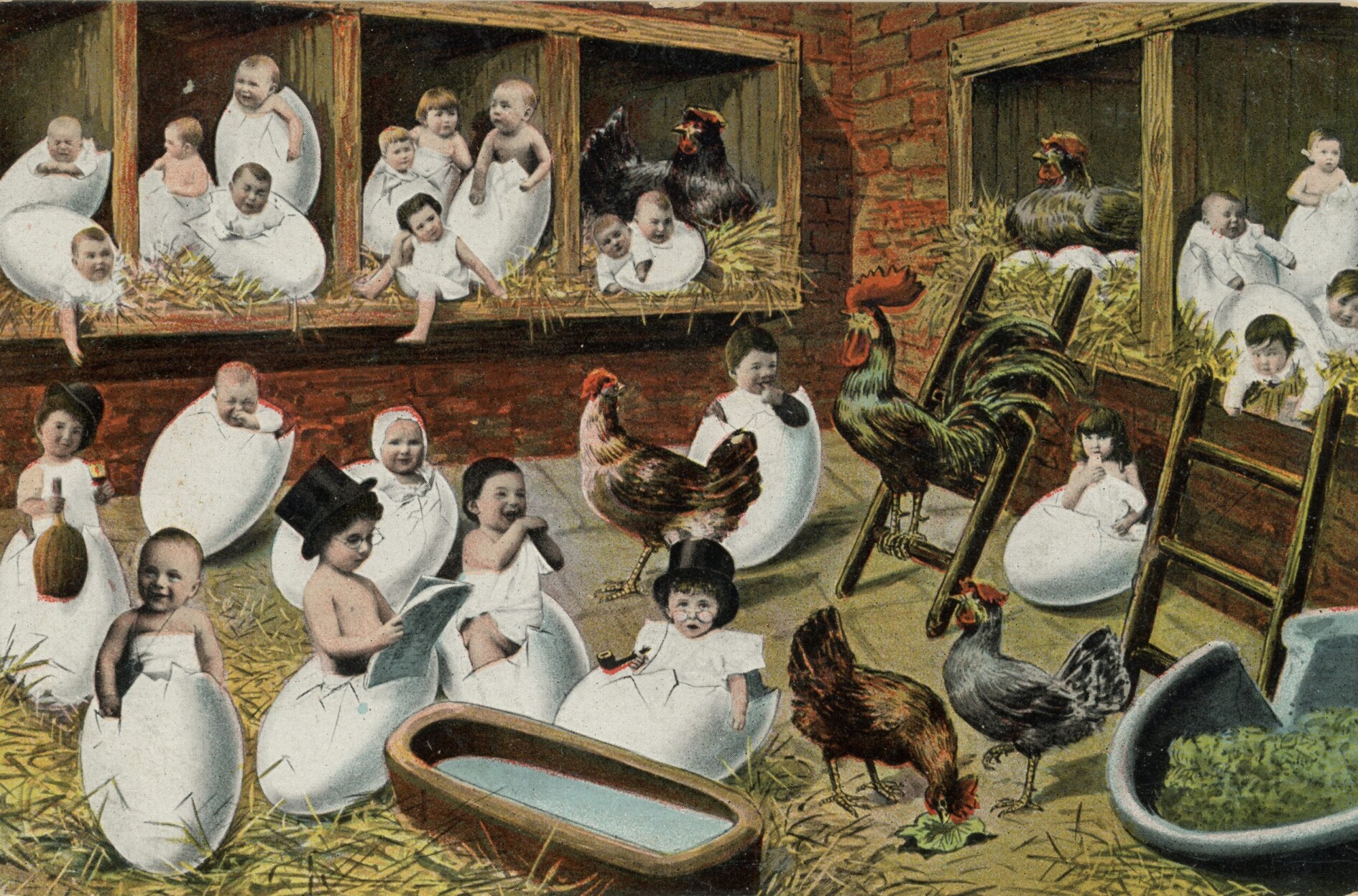 Afb. 2a: Couveuses waren geïnspireerd op broedmachines voor kippeneieren. Bron: ansichtkaart collectie Thijs Gras.