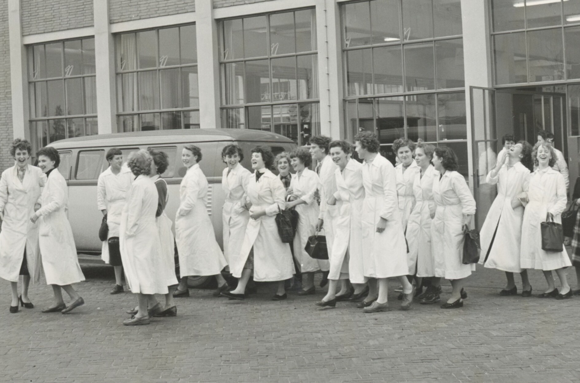Midden jaren vijftig plaatste Philips advertenties om vrouwen te werven. Deze advertenties laten groepen glimlachende vrouwen in witte laboratoriumjassen zien, op zorgvuldig onderhouden bedrijfsterreinen. Een cursief gedrukte tekst informeert de lezers over de omstandigheden in de fabriek, zoals de kantine. Een van de belangrijkste advertenties, geplaatst in de provinciale krant de Gelderlander, adverteert met ‘echt Meisjeswerk’. In bijna alle advertenties staat in kleine lettertjes dat ze op zoek zijn naar ‘nette meisjes’.