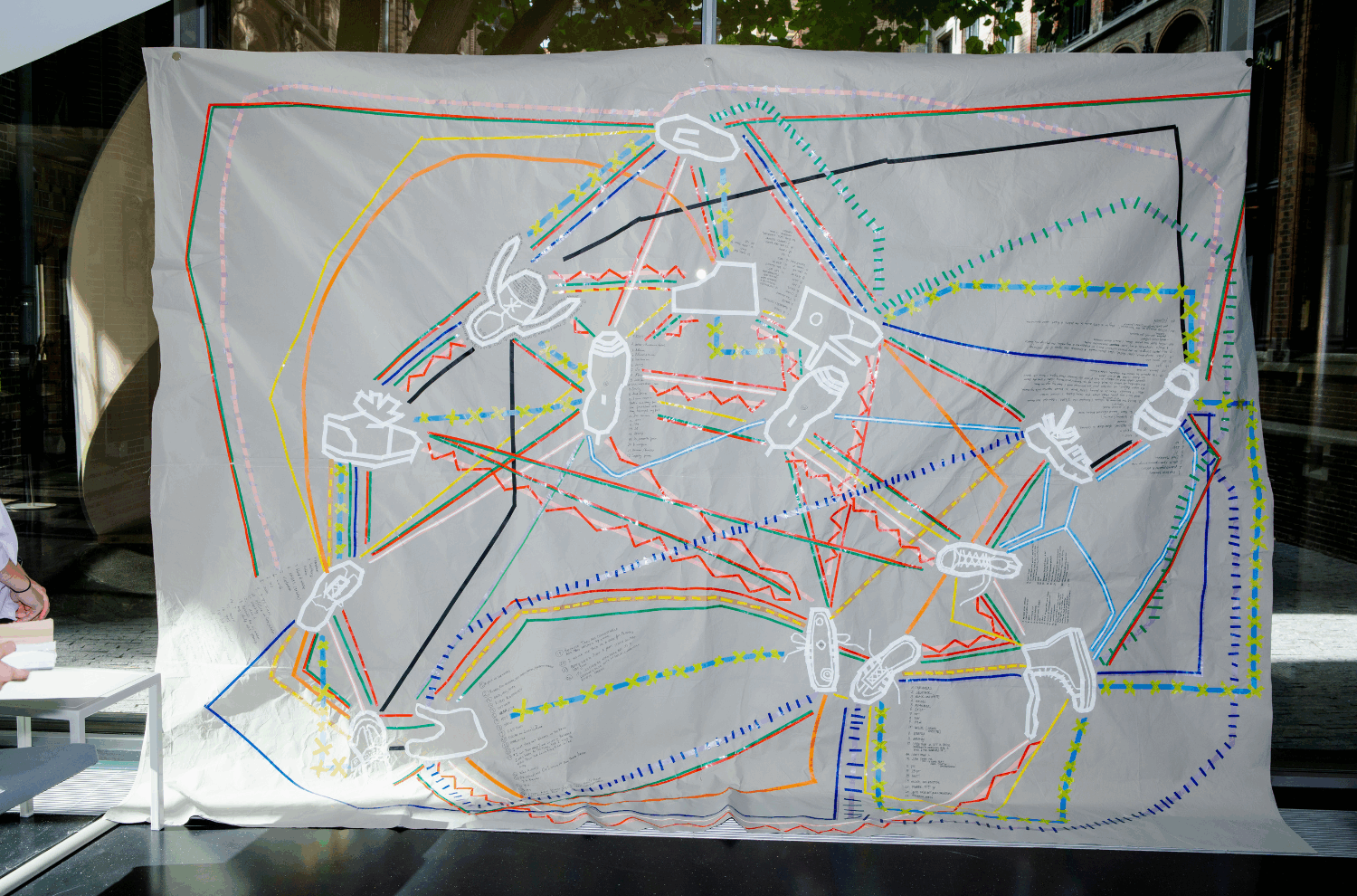 Alternatief gebruik, of queer use, leidt dus tot bloemen, wat op zich al een geweldige relatie is. Net als de opmerking van Elisa die vertelde hoe in deze workshops getekende kledingstukken hun duidelijke markeringen van geslacht verliezen. In 2D blijken de meeste kledingstukken genderneutraal te zijn. Daaruit zou je kunnen concluderen dat gender in de details zit of dat gender niet essentieel is. Ik voel me gemakkelijk overtuigd door deze lezing van de kaart. Zeker, het is een kwestie van interpretatie en net als de taal zijn ook de lijnen van de kaart onvolledig. Maar de lezing klopt in de zin dat dit is wat de lijnen ons hebben verteld. Het klopt in de zin dat dit is wat we elkaar verteld hebben. En dat is kloppend genoeg voor mij.