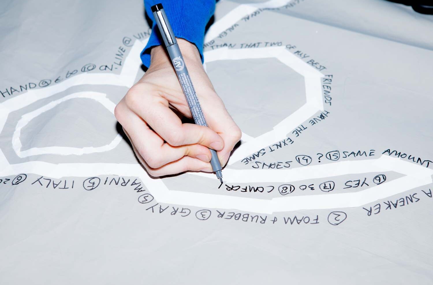 Een vaag bewustzijn van mijn kinderdromen gaat gepaard met elk moment dat ik deze schoenen draag. Dit had ik tot mijn deelname aan de PORTAL workshop niet onder woorden gebracht. Door  met de schoenen te zitten, de omtrekken ervan tekenen, ze te verbinden met andere schoenen en te praten over deze verbindingen, wordt een vaag bewustzijn een herinnering. Het maakt een verhaal. Het bewustzijn verandert bovendien in taal, die weer haar eigen grenzen heeft om de relatie tussen mij en mijn schoenen vast te leggen. Waarmee ik bedoel: zodra ik deze herinnering opschrijf, besef ik dat ze onvolledig is, misschien zelfs vals, een leugen.